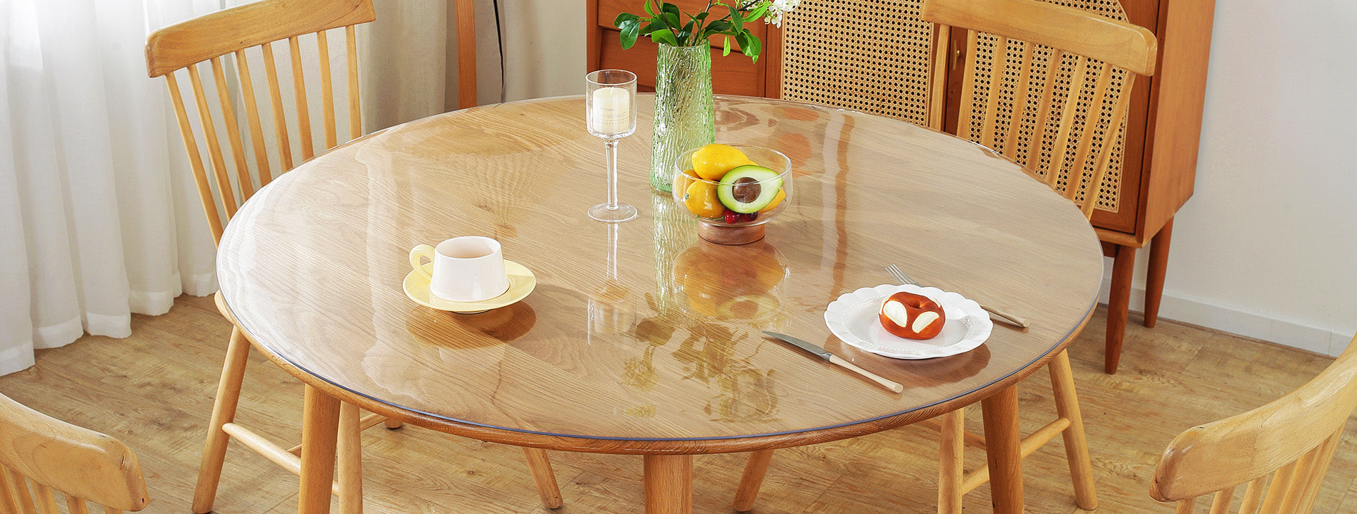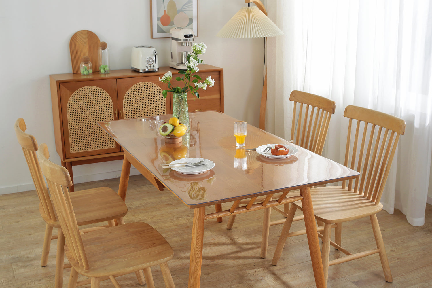 Transparent soft table mats are made of PVC material, which has various properties such as waterproof, oil-proof, anti-fouling, and anti-bacterial. In addition, PVC material is also soft and elastic, suitable for use as table mat material, which can effectively prevent the table from being scratched and worn, while reducing noise and shock resistance.